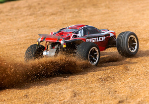 Traxxas Rustler® sits low and wide for maximum high-speed stability and cornering speed. The short wheelbase and lightweight chassis provide quick steering response for an agile feel not found on other trucks. Rustler dominates dirt tracks and tears up the tarmac with a blistering 35+ MPH* top speed. Traxxas’ waterproof electronics let you live out your wildest off-road adventures blasting though puddles, slinging mud, and shredding snow. Rustler delivers power-sliding, full-throttle fun in a Ready-to-Race® package backed by Traxxas’ legendary innovation and toughness.